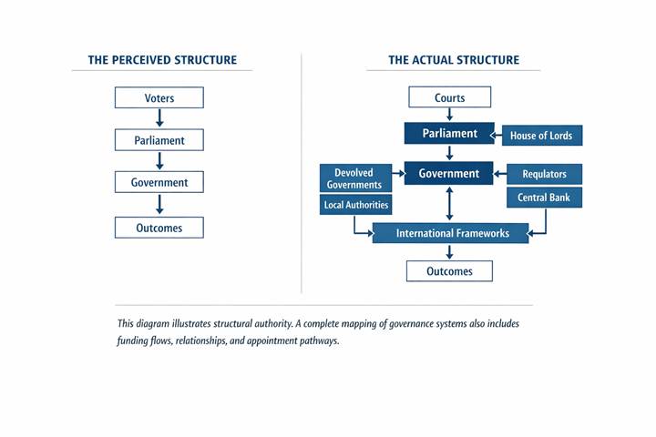 The preceding notes establish that modern governance systems operate through structures that are not fully visible in aggregate. Authority is distributed, influence operates across overlapping domains, and attribution is often partial or incomplete.